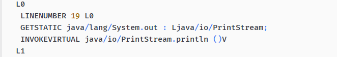 上面的字节码中第 3 行,可以看到其调用的是 java/io/PrintStream.println ()V 方法,这实际上是一个字符串,也就是符号引用,用于在实际使用前作为标识的作用。